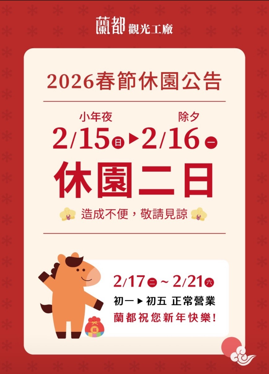 蘭都觀光工廠 休園2日