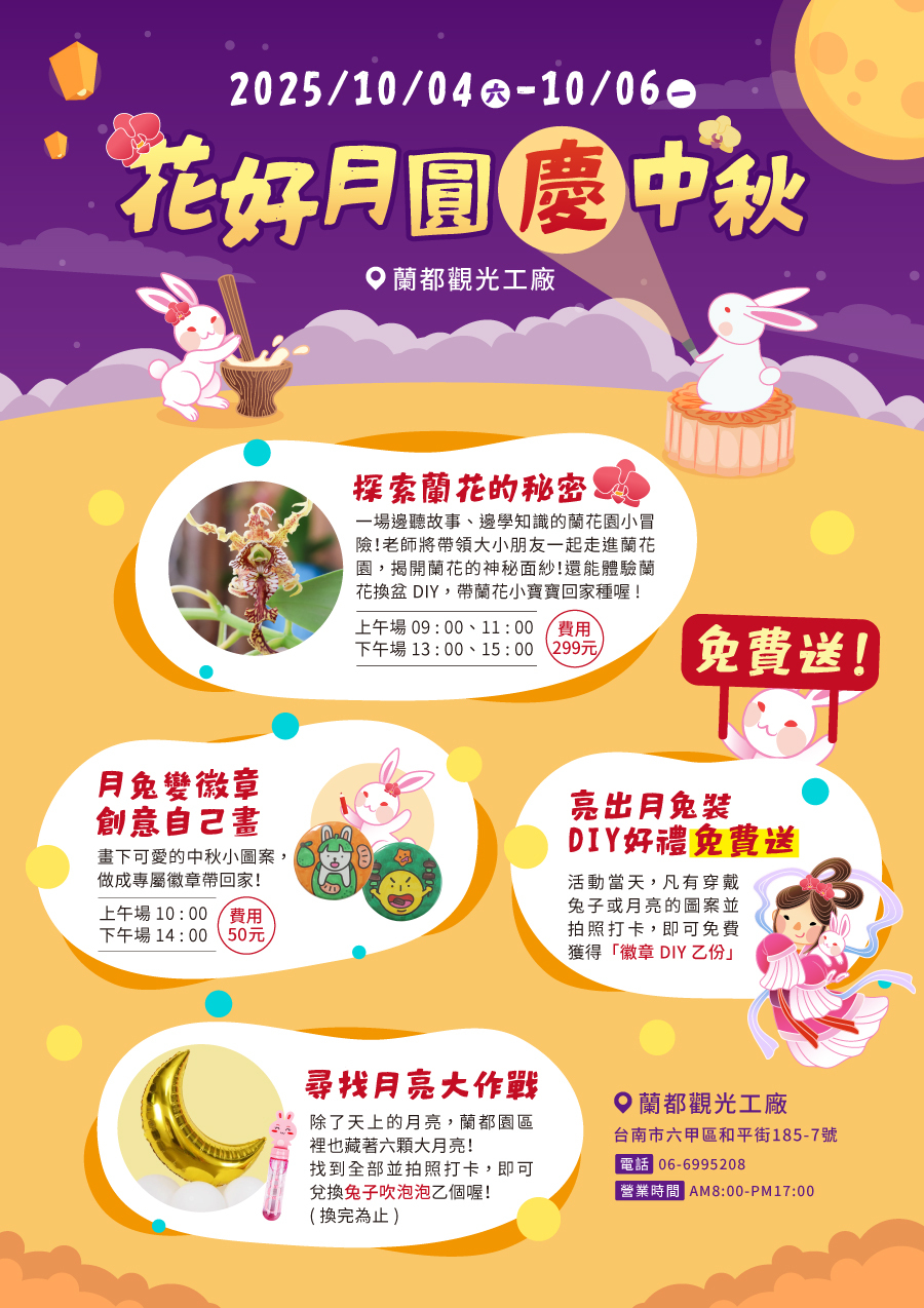 只要在中秋連假期間,穿著「有兔子」或「月亮」圖案的衣服、帽子或配件,到園區拍照打卡上傳,就能免費獲得「徽章DIY體驗券」乙份哦!