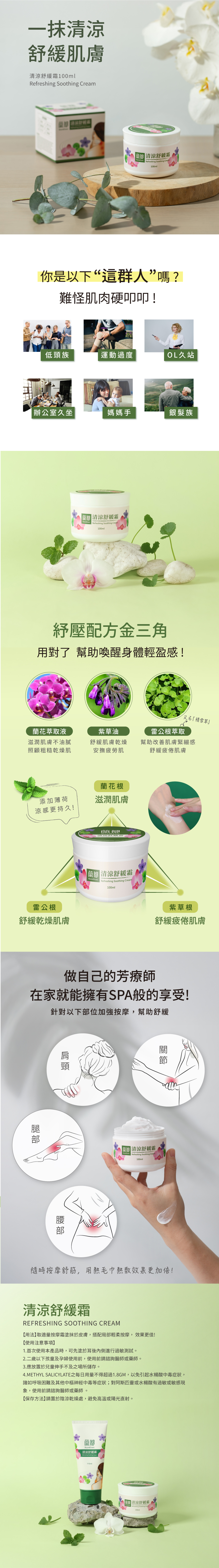 清涼舒緩霜搭配按摩,活絡肩頸、紓壓肌肉